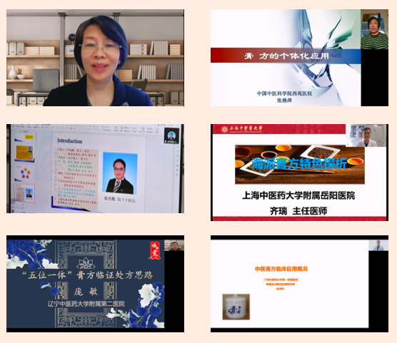 開幕式結(jié)束后,大會開展了線上學(xué)術(shù)報告和學(xué)術(shù)交流活動。董瑞會長做了《中醫(yī)膏方概論》的學(xué)術(shù)報告;北京中醫(yī)藥大學(xué)蘇慧萍教授、中國中醫(yī)科學(xué)院西苑醫(yī)院張燕萍教授、港澳臺中醫(yī)醫(yī)師聯(lián)合促進會總會會長盧致鵬教授、上海中醫(yī)藥大學(xué)岳陽中西醫(yī)結(jié)合醫(yī)院齊瑞教授、遼寧中醫(yī)藥大學(xué)附屬第二醫(yī)院龐敏教授、廣西中醫(yī)藥大學(xué)第一附屬醫(yī)院賓博平教授六位中醫(yī)膏方專業(yè)委員會副會長分別作了《膏方防治慢阻肺的組方用藥特點》《膏方的個體化應(yīng)用》《脾胃系統(tǒng)(慢性胃炎疾?。┑闹形麽t(yī)論述臨床觀察與證型研究》《海派膏方的特點》《膏方臨床應(yīng)用思路》《中醫(yī)膏方臨床概論》的學(xué)術(shù)報告,并與在線專家學(xué)者進行了互動交流。中醫(yī)膏方專業(yè)委員會第二屆理事會換屆會議暨第五屆學(xué)術(shù)年會取得了圓滿成功。