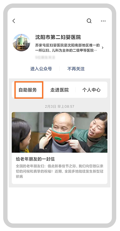 微信公眾號(hào)搜索:沈陽(yáng)市第二婦嬰醫(yī)院,或掃描醫(yī)院二維碼,關(guān)注公眾號(hào)。