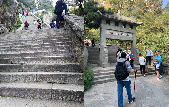 眼前泰山的巍峨,綠意蔥蔥的容貌,隨山勢而上的臺階,讓大家由衷贊嘆。大家摩拳擦掌,誓要做登頂?shù)谝粋€人,去感受那“浮在云霧中,一覽眾山小”的趣意。事實上,這個海拔1524米的天然氧吧給我們的肺的確做了一個很棒的spa,從內(nèi)到外的舒暢,從外到內(nèi)的滿足,感嘆工匠們巧奪天工的設(shè)計。