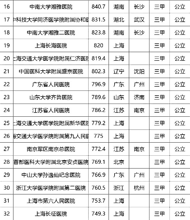 “100強”榜單中,入圍最多的三個省市分別是北京(16家醫(yī)院)、上海(13家醫(yī)院)、廣東(9家)。“100強”共覆蓋32個城市,包括4個直轄市(36家醫(yī)院)、23個省會城市(59家醫(yī)院)、5個地級市(5家醫(yī)院)。總體看,城市的醫(yī)院平均得分和上榜機構數(shù)有一定的相關性,上榜機構數(shù)多的城市一般得分均值較高,說明這些城市醫(yī)院整體實力較高。
