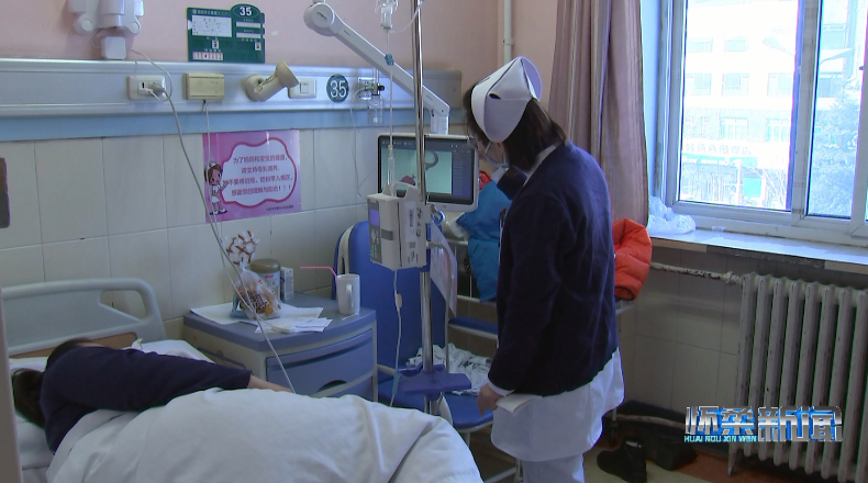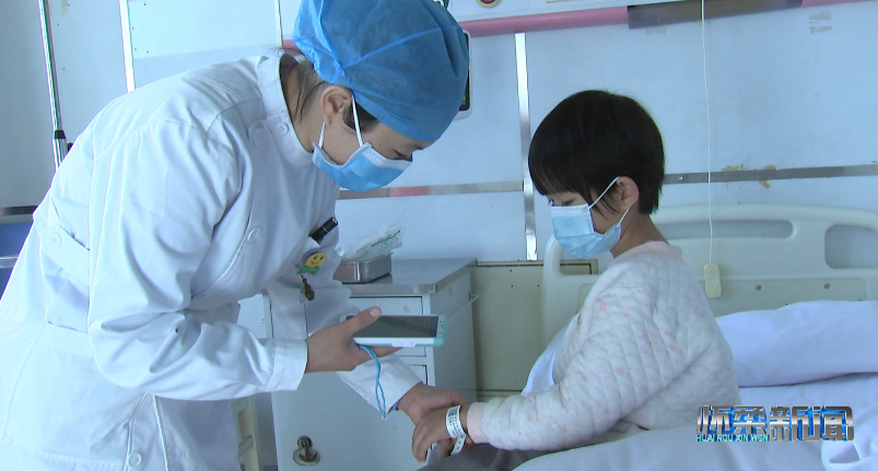 在兒科病房?jī)?nèi),前來換藥的護(hù)士打開床旁照護(hù)系統(tǒng),為小患者挑選喜歡的動(dòng)畫片,在確認(rèn)患者身份后用手持PDA掃描患者腕帶上的二維碼,識(shí)別病例等信息并登記換藥情況。有了床旁照護(hù)系統(tǒng)的動(dòng)畫轉(zhuǎn)移注意力,小患者不在緊張、害怕,整個(gè)換藥過程十分平穩(wěn)、迅速。