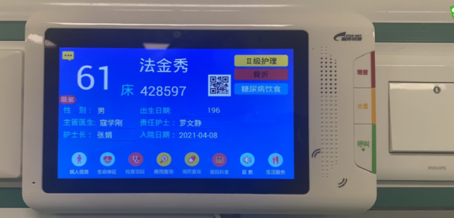 位于患者床頭的“ 智能電子床頭屏”